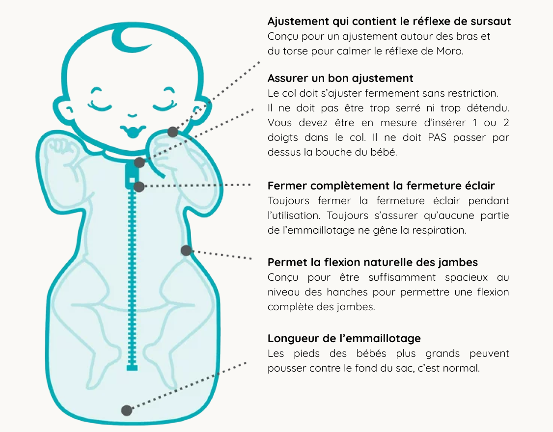 Un emmaillotage trop large perd son effet cocon, trop serré limite le confort.
